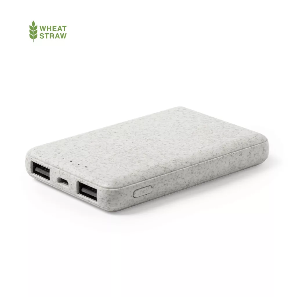 Description: 5,000 mAh, ultra compact, external auxiliary battery in nature line, with shell in wheat straw, to encourage the use of natural raw materials and reducing contaminant emissions. Dual USB output and micro USB input -cable included-. Wide printing area and presented in an attractive, individual, eco-design box. The capacities shown in all our external auxiliary batteries are real, all of them incorporating non-recycled, grade A batteries, with a service life of at least 500 charging cycles, and complying with CE regulations. In addition, they are manufactured according RoHS standards, and in compliance with the following safety requirements: Power bank overcharge protection system. Complete discharge protection system, which increases the durability of the power bank. Blocking system to prevent short circuits. Constant charging transfer system, in accordance with the capacity of the target device.