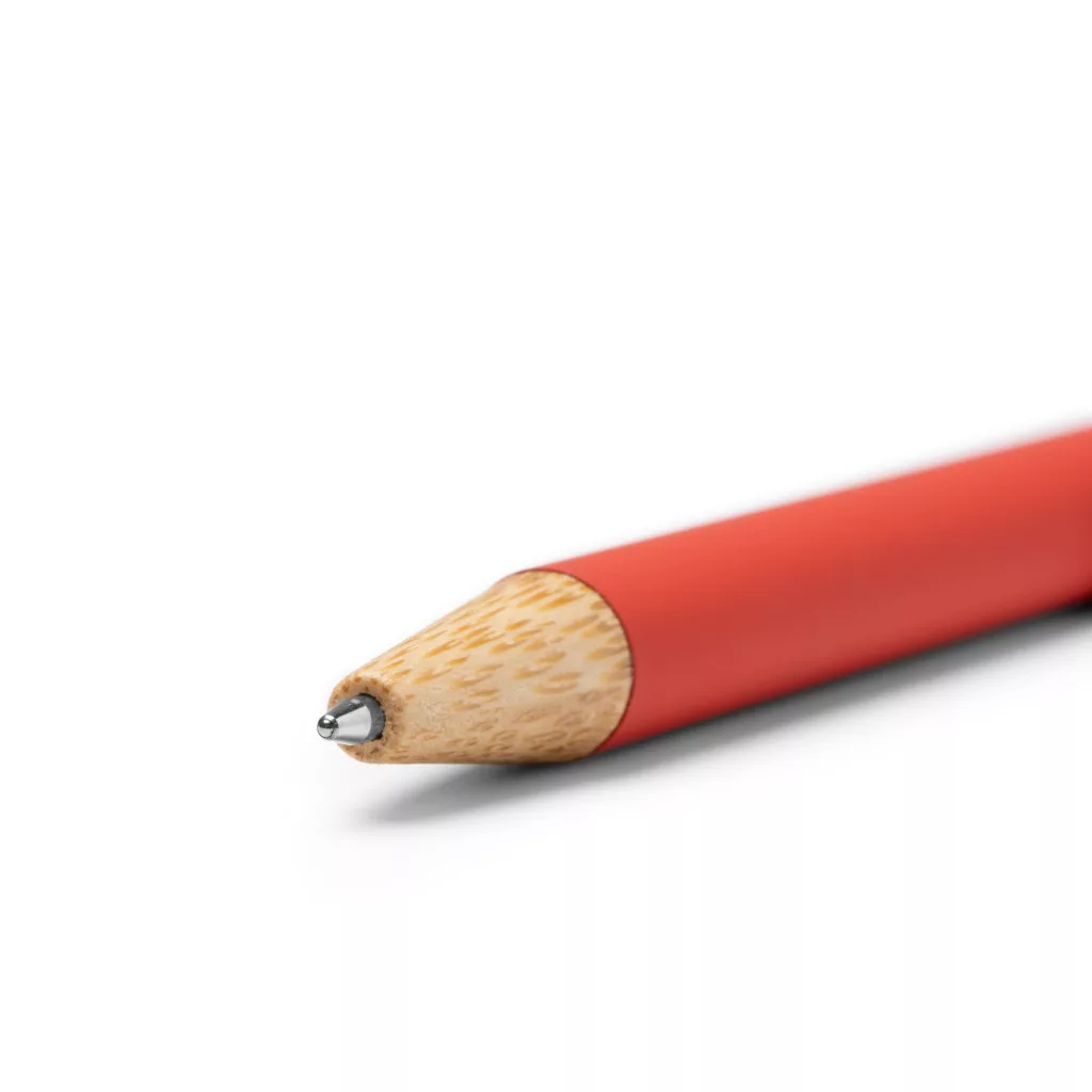 BL1506 - Pix din metal cauciucat cu buton din bambus, clip lat si plat din bambus ideal pentru personalizare - COPLA - ROSU