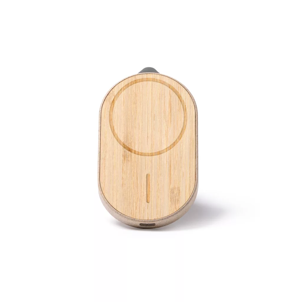 Description: The Car Phone Holder Stand with Magnetic Function for Smartphone and Wireless Charger is a complete and versatile solution for your needs in the car. This stand is made of bamboo and wheat fibre, sustainable materials that add a natural and ecological touch.In addition to keeping your smartphone in place while driving, this stand features a wireless charging feature, allowing you to conveniently charge your device while on the move. Compatible with wireless charging technology-enabled devices.The car phone holder stand also includes an emergency glass breaking hammer and a belt cutter, making it an additional safety accessory in case of unforeseen situations.A Type C cable and metal ring are included in the package for easy installation and connection. The stand is presented in an eco design box, highlighting its commitment to sustainability.With the magnetic function car phone holder stand and wireless charger, you can keep your smartphone safe and charge it on the go, all while caring about the environment. Plus, having additional safety tools gives you peace of mind in unexpected situations.