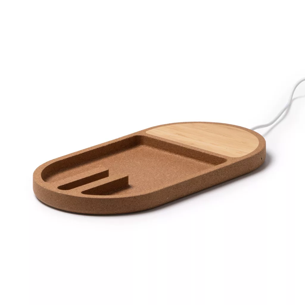 CR1210 - Incarcator wireless din bambus si pluta cu tavita organizatoare - 10W - COSMIC - NATURAL