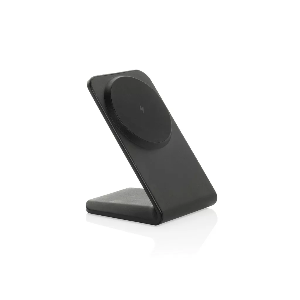 Description: The VoltPerch 15W magnetic wireless charging phone stand offers seamless charging with a powerful 15W output and a secure magnetic hold for mobile devices. Its 15 high quality magnets ensure perfect alignment for efficient charging, whether in horizontal or vertical position. The silicone pads at the base provide stability on any surface, while a built-in charging indicator keeps you informed. The case is made from RCS certified recycled ABS plastic. RCS (Recycled Claim Standard) is a standard to verify the recycled content of a product throughout the whole supply chain. Total recycled content: 47 % based on total item weight. This stand is PVC-free and packaged in an FSC-certified kraft box. The stand includes a 120 cm USB-C to USB-C cable made from RCS-certified recycled TPE. Input USB-C: 9V/2.22A.